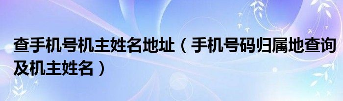 大家好,雨雨来为大家解答以上问题,查手机号机主姓名地址,手机号码归属地查询及机主姓名很多人还不知道,现在让我们一起来看看吧!