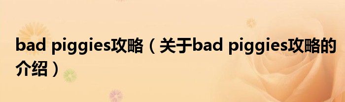 大家好,今天小乐来为大家解答以上的问题。bad piggies攻略,关于bad piggies攻略的介绍很多人还不知道,现在让我们一起来看看吧!