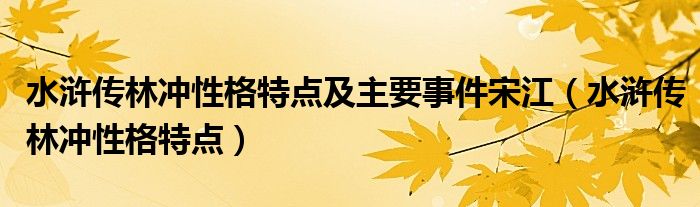 关于水浒传林冲性格特点及主要事件宋江,水浒传林冲性格特点这个很多人还不知道,今天菲菲来为大家解答以上的问题,现在让我们一起来看看吧!