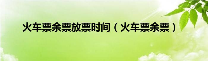 大家好,雨雨来为大家解答以上问题,火车票余票放票时间,火车票余票很多人还不知道,现在让我们一起来看看吧!