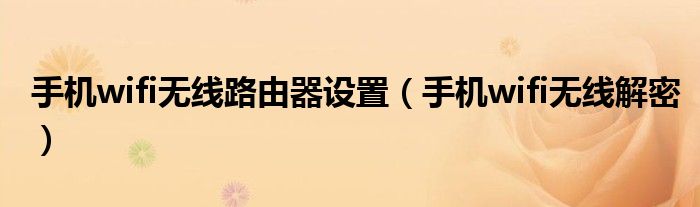 大家好,雨雨来为大家解答以上问题,手机wifi无线路由器设置,手机wifi无线解密很多人还不知道,现在让我们一起来看看吧!