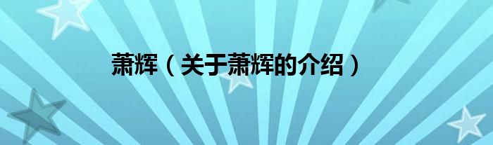 大家好,今天小乐来为大家解答以上的问题。萧辉,关于萧辉的介绍很多人还不知道,现在让我们一起来看看吧!