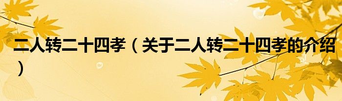 大家好,今天小乐来为大家解答以上的问题。二人转二十四孝,关于二人转二十四孝的介绍很多人还不知道,现在让我们一起来看看吧!