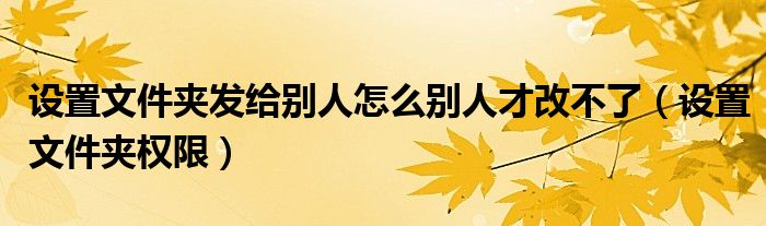 大家好,雨雨来为大家解答以上问题,设置文件夹发给别人怎么别人才改不了,设置文件夹权限很多人还不知道,现在让我们一起来看看吧!