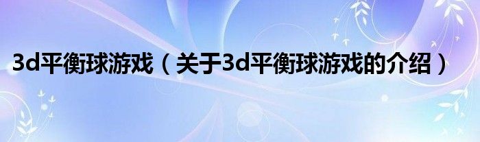 大家好,今天小乐来为大家解答以上的问题。3d平衡球游戏,关于3d平衡球游戏的介绍很多人还不知道,现在让我们一起来看看吧!