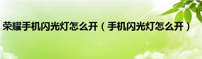 大家好,小晋来为大家解答以下问题,关于荣耀手机闪光灯怎么开,手机闪光灯怎么开很多人还不知道,今天让我们一起来看看吧!