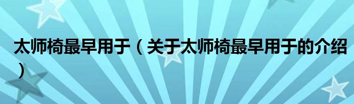 大家好,今天小乐来为大家解答以上的问题。太师椅最早用于,关于太师椅最早用于的介绍很多人还不知道,现在让我们一起来看看吧!