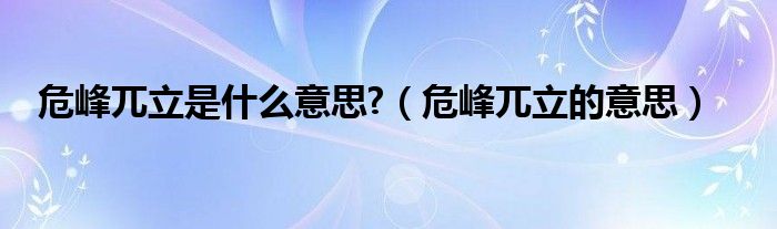 关于危峰兀立是什么意思?,危峰兀立的意思这个很多人还不知道,今天菲菲来为大家解答以上的问题,现在让我们一起来看看吧!