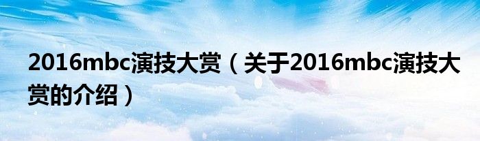 大家好,今天小乐来为大家解答以上的问题。2016mbc演技大赏,关于2016mbc演技大赏的介绍很多人还不知道,现在让我们一起来看看吧!