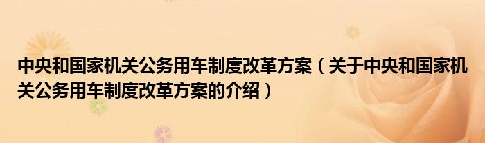 大家好,今天小乐来为大家解答以上的问题。中央和国家机关公务用车制度改革方案,关于中央和国家机关公务用车制度改革方案的介绍很多人还不知道,现在让我们一起来看看吧!