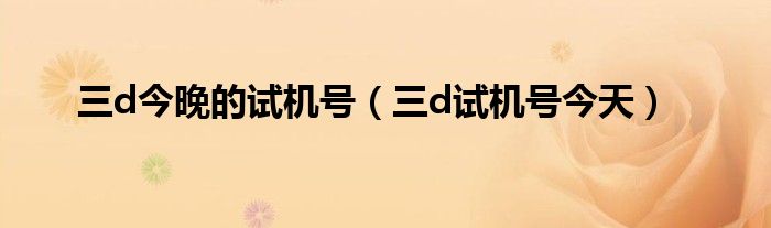 关于三d今晚的试机号,三d试机号今天这个很多人还不知道,今天菲菲来为大家解答以上的问题,现在让我们一起来看看吧!