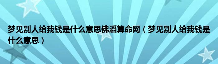 关于梦见别人给我钱是什么意思佛滔算命网,梦见别人给我钱是什么意思这个很多人还不知道,今天菲菲来为大家解答以上的问题,现在让我们一起来看看吧!