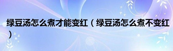 3、 怎么煮绿豆汤才能不变红呢?在我们实验室做研究的过程中,意外地发现了煮绿豆汤不变红的奥秘: 煮绿豆汤变色或不变色,关键在水质当中——如果用纯净水来煮绿豆汤,不仅倒出来的时候呈现碧绿颜色,放很久都不会变色,还是碧绿的。