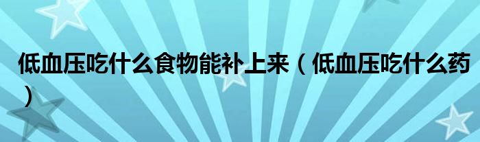关于低血压吃什么食物能补上来,低血压吃什么药这个很多人还不知道,今天菲菲来为大家解答以上的问题,现在让我们一起来看看吧!