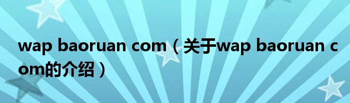 wap baoruan com(关于wap baoruan com的介绍)