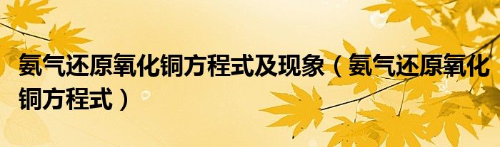 关于氨气还原氧化铜方程式及现象,氨气还原氧化铜方程式这个很多人还不知道,今天菲菲来为大家解答以上的问题,现在让我们一起来看看吧!