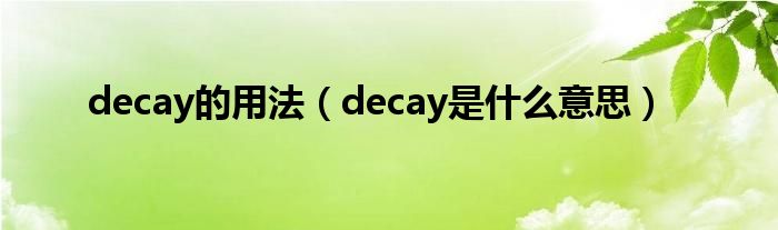 大家好,小晋来为大家解答以下问题,关于decay的用法,decay是什么意思很多人还不知道,今天让我们一起来看看吧!