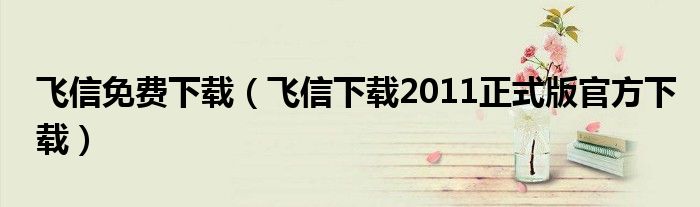飞信免费下载(飞信下载2011正式版官方下载)