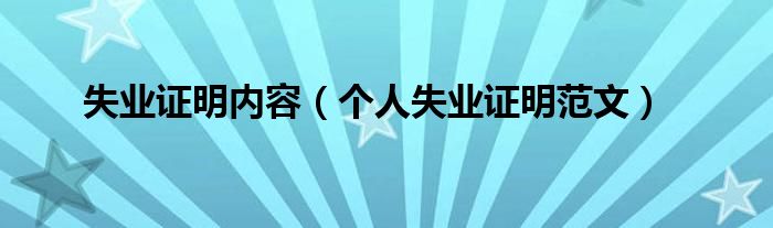 关于失业证明内容,个人失业证明范文这个很多人还不知道,今天菲菲来为大家解答以上的问题,现在让我们一起来看看吧!