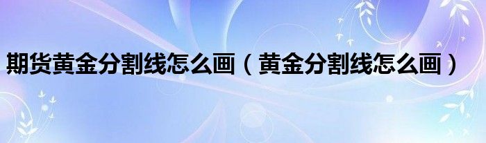 关于期货黄金分割线怎么画,黄金分割线怎么画这个很多人还不知道,今天菲菲来为大家解答以上的问题,现在让我们一起来看看吧!