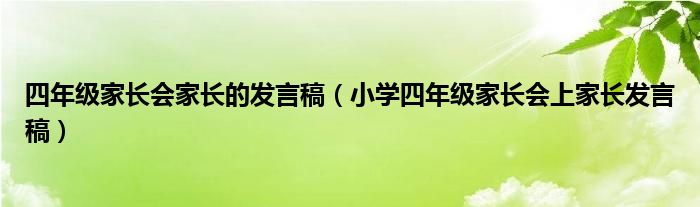 关于四年级家长会家长的发言稿,小学四年级家长会上家长发言稿这个很多人还不知道,今天菲菲来为大家解答以上的问题,现在让我们一起来看看吧!