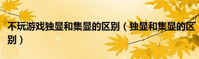 关于不玩游戏独显和集显的区别,独显和集显的区别这个很多人还不知道,今天菲菲来为大家解答以上的问题,现在让我们一起来看看吧!