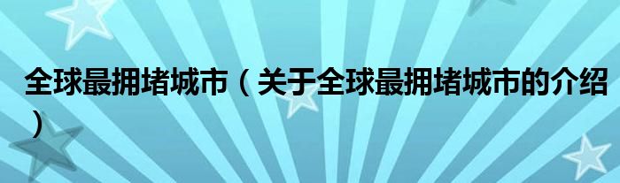 全球最拥堵城市(关于全球最拥堵城市的介绍)