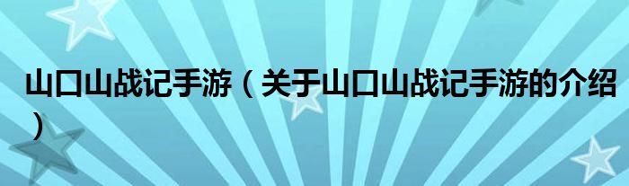 大家好,今天小乐来为大家解答以上的问题。山口山战记手游,关于山口山战记手游的介绍很多人还不知道,现在让我们一起来看看吧!