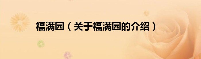 大家好,小都来为大家解答以上的问题。福满园,关于福满园的介绍很多人还不知道,现在让我们一起来看看吧!