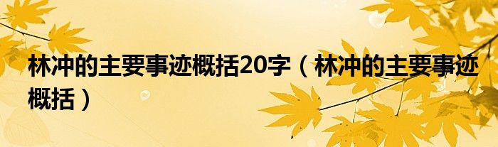 关于林冲的主要事迹概括20字,林冲的主要事迹概括这个很多人还不知道,今天菲菲来为大家解答以上的问题,现在让我们一起来看看吧!