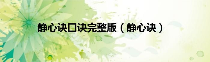 关于静心诀口诀完整版,静心诀这个很多人还不知道,今天菲菲来为大家解答以上的问题,现在让我们一起来看看吧!