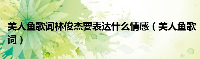 关于美人鱼歌词林俊杰要表达什么情感,美人鱼歌词这个很多人还不知道,今天菲菲来为大家解答以上的问题,现在让我们一起来看看吧!