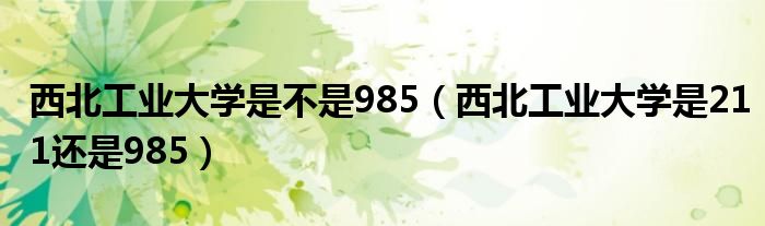 关于西北工业大学是不是985,西北工业大学是211还是985这个很多人还不知道,今天菲菲来为大家解答以上的问题,现在让我们一起来看看吧!