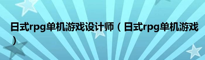关于日式rpg单机游戏设计师,日式rpg单机游戏这个很多人还不知道,今天菲菲来为大家解答以上的问题,现在让我们一起来看看吧!