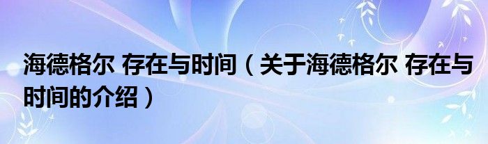 大家好,小都来为大家解答以上的问题。海德格尔 存在与时间,关于海德格尔 存在与时间的介绍很多人还不知道,现在让我们一起来看看吧!