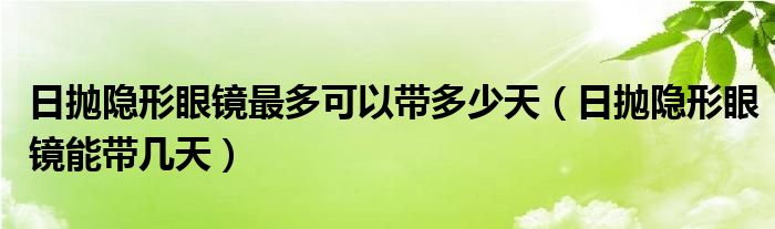 关于日抛隐形眼镜最多可以带多少天,日抛隐形眼镜能带几天这个很多人还不知道,今天菲菲来为大家解答以上的问题,现在让我们一起来看看吧!