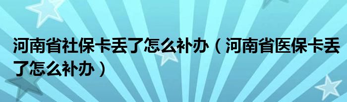 关于河南省社保卡丢了怎么补办,河南省医保卡丢了怎么补办这个很多人还不知道,今天菲菲来为大家解答以上的问题,现在让我们一起来看看吧!
