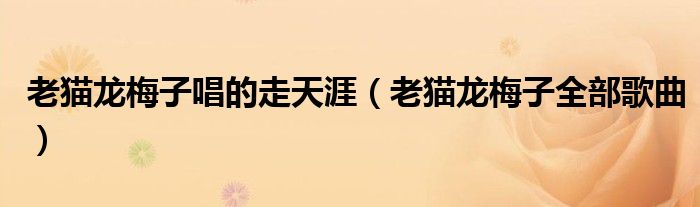 关于老猫龙梅子唱的走天涯,老猫龙梅子全部歌曲这个很多人还不知道,今天菲菲来为大家解答以上的问题,现在让我们一起来看看吧!