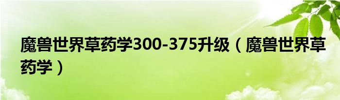 关于魔兽世界草药学300-375升级,魔兽世界草药学这个很多人还不知道,今天菲菲来为大家解答以上的问题,现在让我们一起来看看吧!