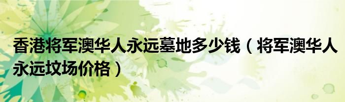 关于香港将军澳华人永远墓地多少钱,将军澳华人永远坟场价格这个很多人还不知道,今天菲菲来为大家解答以上的问题,现在让我们一起来看看吧!