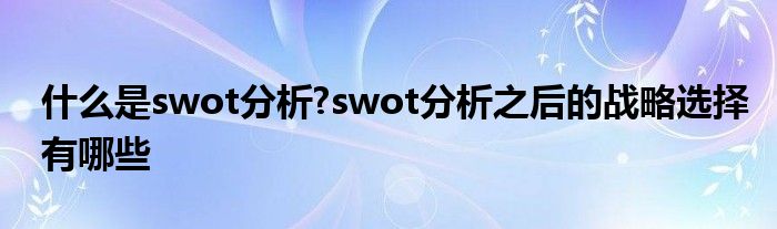 关于什么是swot分析?swot分析之后的战略选择有哪些这个很多人还不知道,今天菲菲来为大家解答以上的问题,现在让我们一起来看看吧!