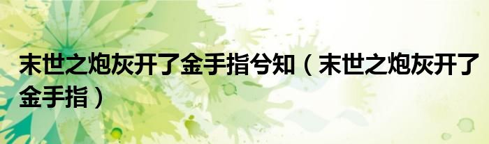 大家好,小晋来为大家解答以下问题,关于末世之炮灰开了金手指兮知,末世之炮灰开了金手指很多人还不知道,今天让我们一起来看看吧!