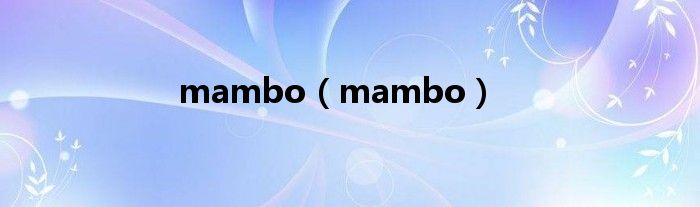 大家好,小飞来为大家解答以上问题,mambo,mambo很多人还不知道,现在让我们一起来看看吧!
