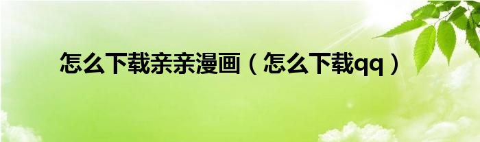大家好,小飞来为大家解答以上问题,怎么下载亲亲漫画,怎么下载qq很多人还不知道,现在让我们一起来看看吧!
