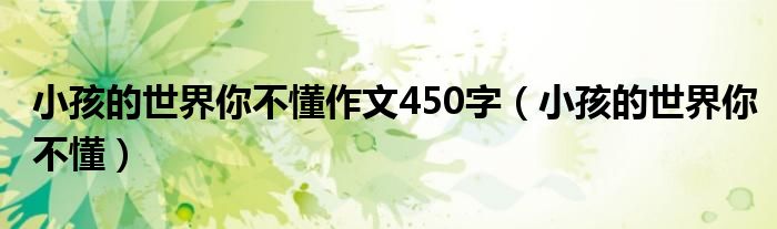 小孩的世界你不懂作文450字,小孩的世界你不懂很多人还不知道,乐乐来为大家解答以上问题,现在让我们一起来看看吧!