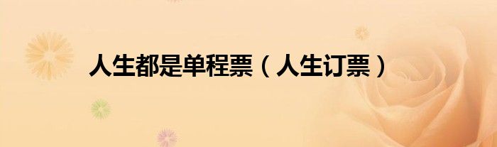 人生都是单程票,人生订票很多人还不知道,乐乐来为大家解答以上问题,现在让我们一起来看看吧!