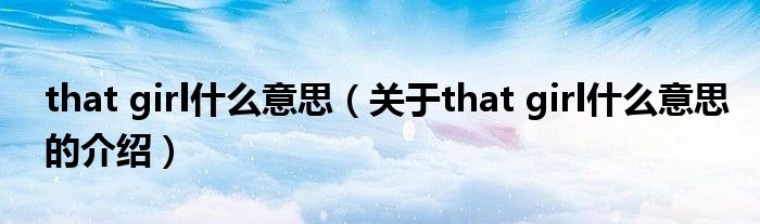 that girl什么意思(关于that girl什么意思的介绍)