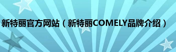 大家好,小源来为大家解答以上问题。新特丽官方网站,新特丽COMELY品牌介绍很多人还不知道,现在让我们一起来看看吧!
