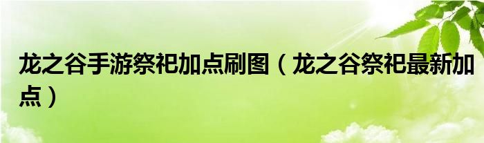 龙之谷手游祭祀加点刷图,龙之谷祭祀最新加点很多人还不知道,乐乐来为大家解答以上问题,现在让我们一起来看看吧!