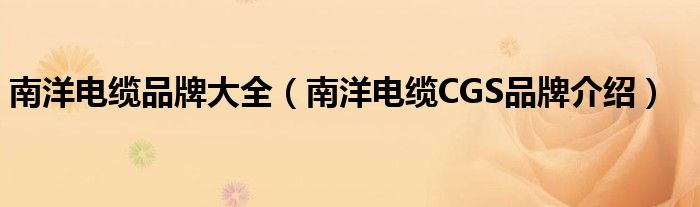 大家好,小源来为大家解答以上问题。南洋电缆品牌大全,南洋电缆CGS品牌介绍很多人还不知道,现在让我们一起来看看吧!